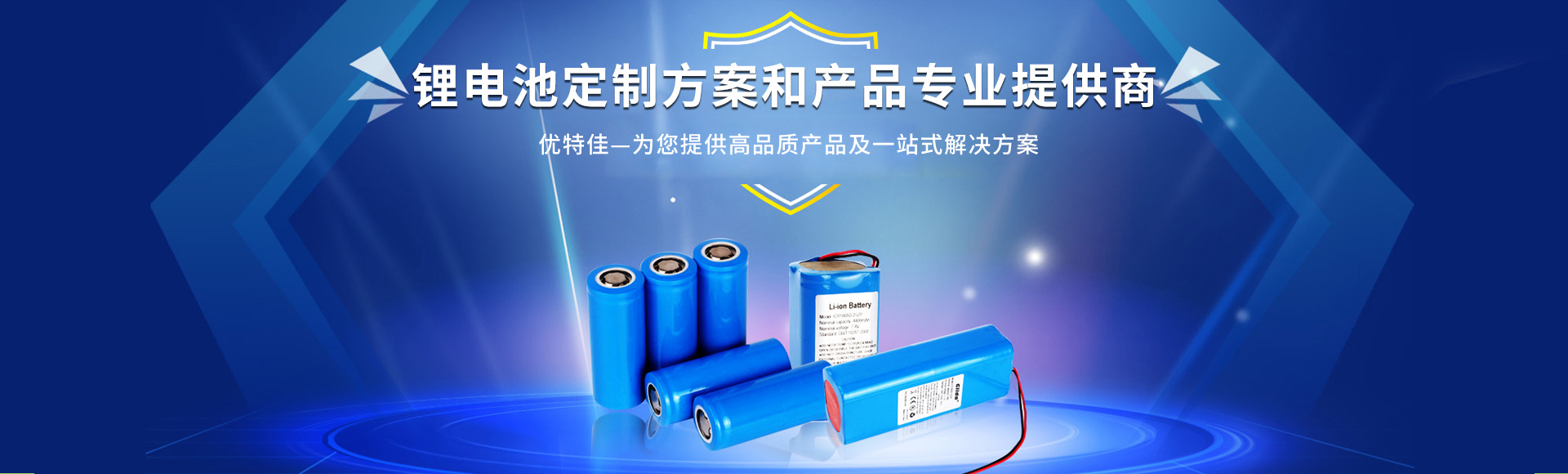 深圳市优特佳科技有限公司是一家集锂离子二次电池研发、生产、销售于一体的高新技术企业。产品函盖聚合物锂离子电池、圆柱型锂离子电池、暖手宝电池、美容仪器电池、刮痧仪器电池、机器人电池、投影仪电池、吸奶器电池、工具灯电池等各种充电电池组合成品、锂电保护集成线路等各类电源系统解决方案。产品广泛应用于蓝牙设备、穿戴设备、3D设备、手机、对讲机、上网本、平板电脑、电子书、GPS、PSP游戏机、学习机、数码相框、电动工具等领域。